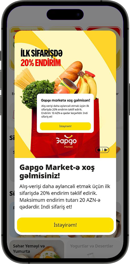 - Sürətli çatdırılma: Sifarişləriniz yalnız 30 dəqiqə ərzində qapınıza çatdırılır.